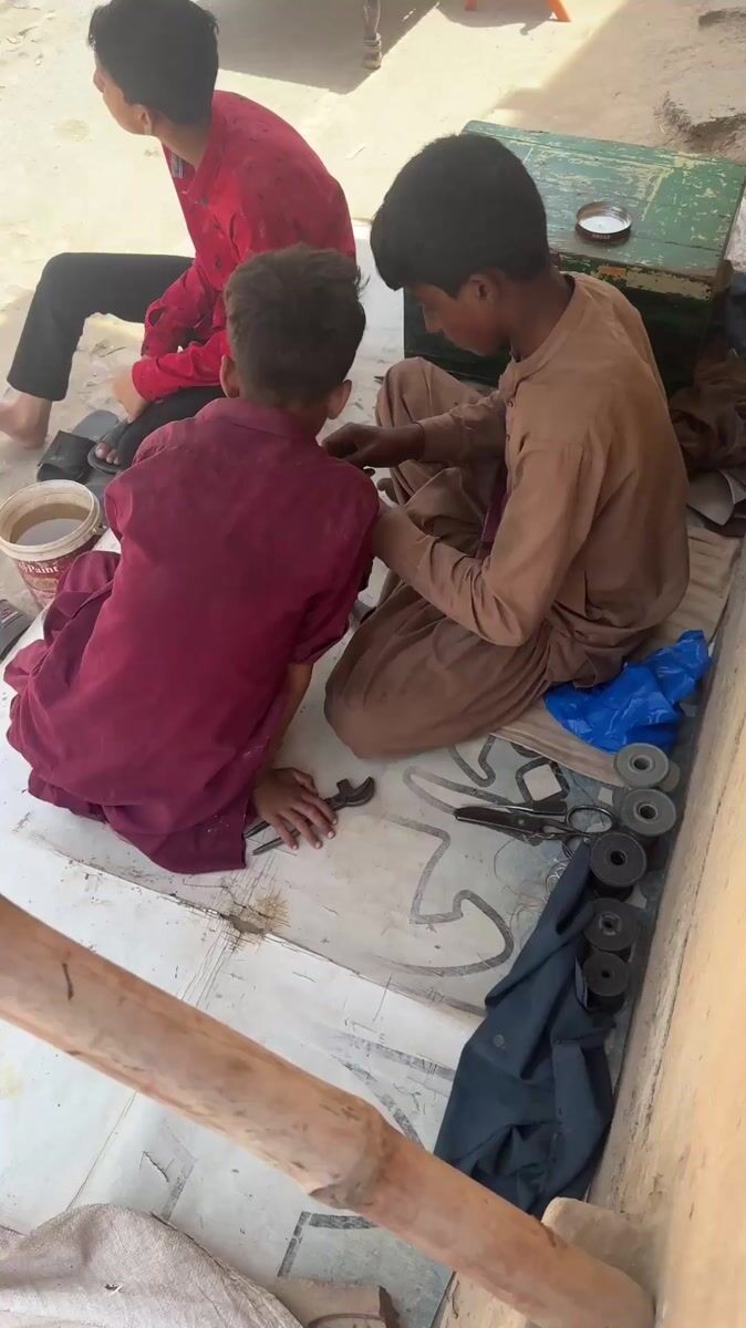 Topics: street vendor, children playing, shoe repair, goat feeding, morning activity, street life, urban scene, daily life, community, documentary