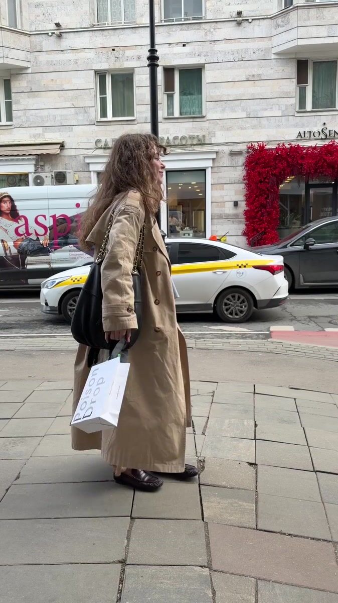 Topics: trench coat, sidewalk walking, woman pedestrian, street scene, urban walking, moscow street, daily life, urban, pedestrian, city life