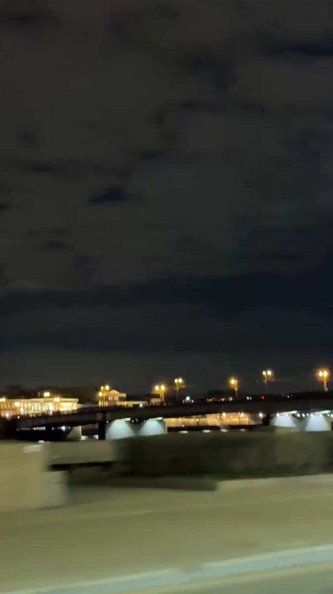 Night cityscape captured along illuminated St. Petersburg riverfront