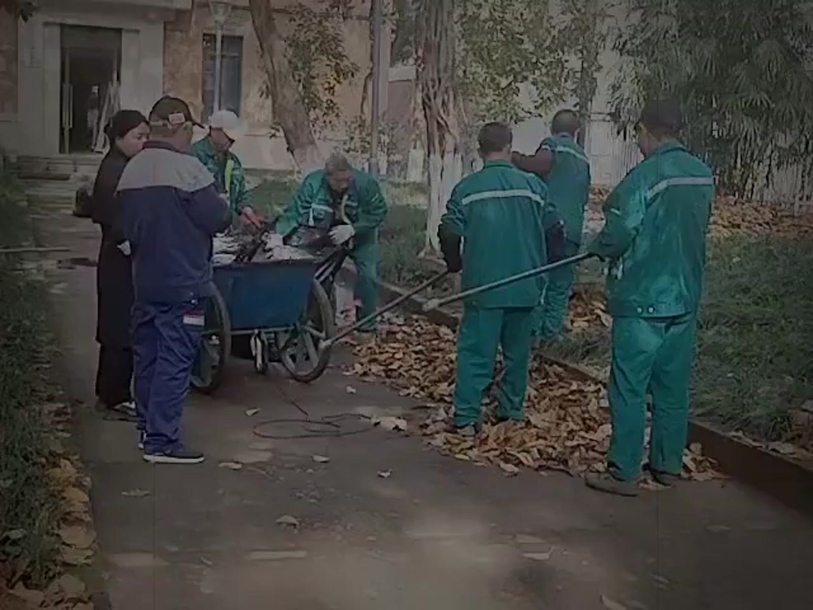 Topics: municipal cleaning, park maintenance, campus grounds, night activity, public space, urban parks, institutional, maintenance, urban life, daily routine