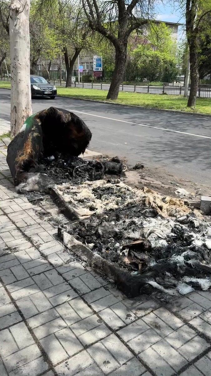 Waste container fire leaves debris on Haskovo street