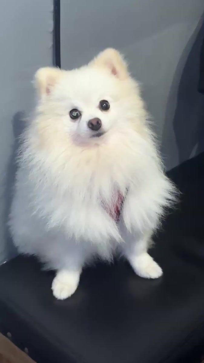 Topics: pomeranian, white dog, pet portrait, small dog, domestic animal, pet, animal, daily life, residential, local scene