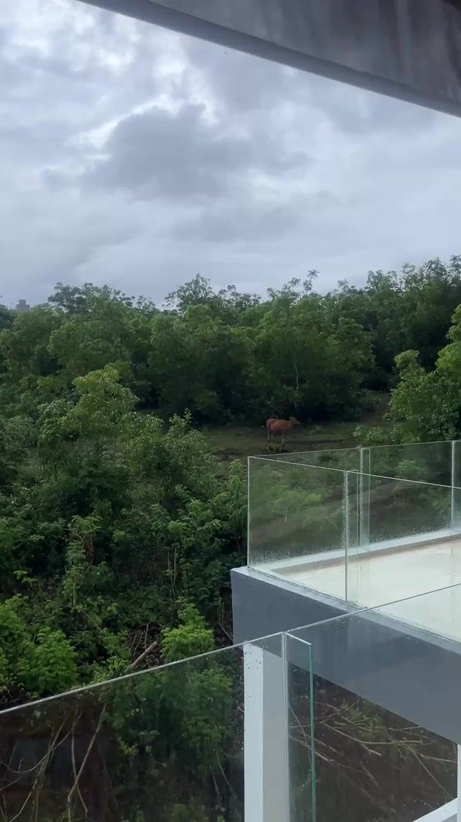 Cattle spotted grazing during heavy rainfall in Kuta Selatan