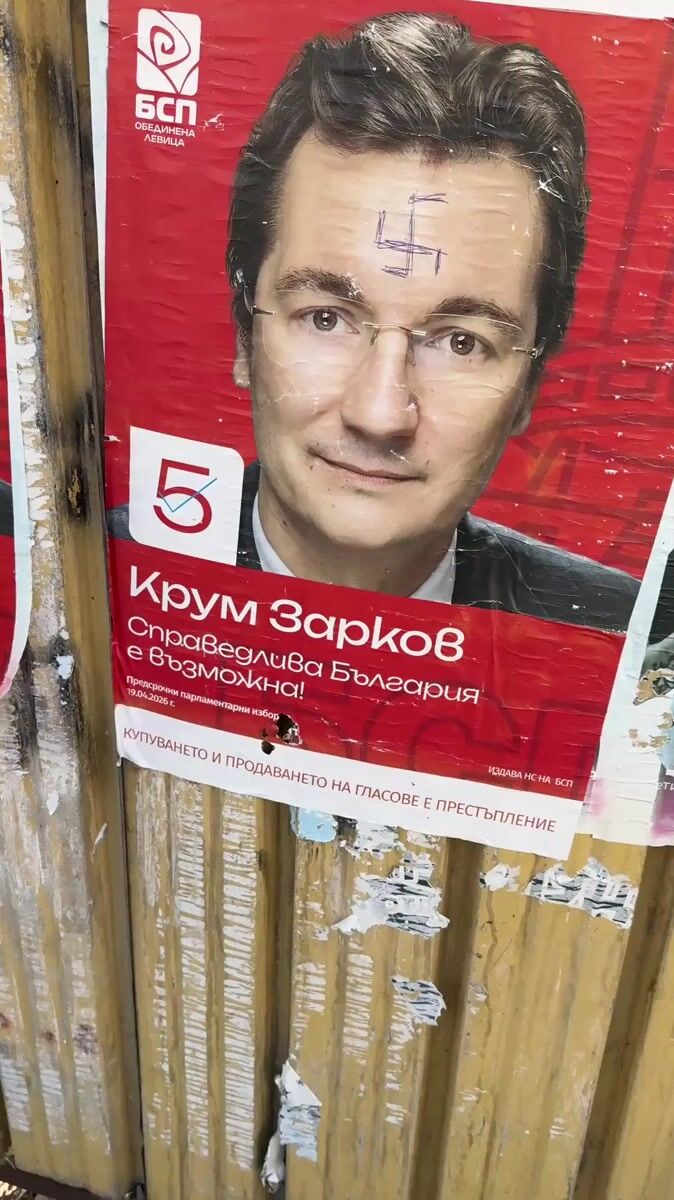 Topics: political poster, convenience store, glass doors, street documentation, urban activity, daily life, commercial, pedestrian, urban, social