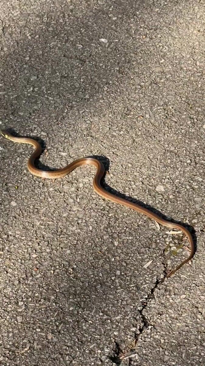 Topics: snake, asphalt road, wildlife sighting, reptile, urban wildlife, road encounter, nature, animal, urban, daily life