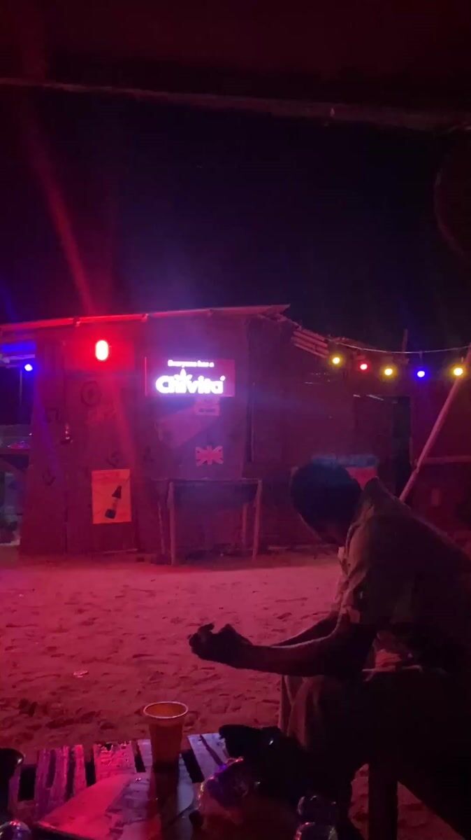Topics: nighttime selfie, outdoor performance, bar lounge, microphone singing, nightlife, social gathering, entertainment, urban, social, daily life