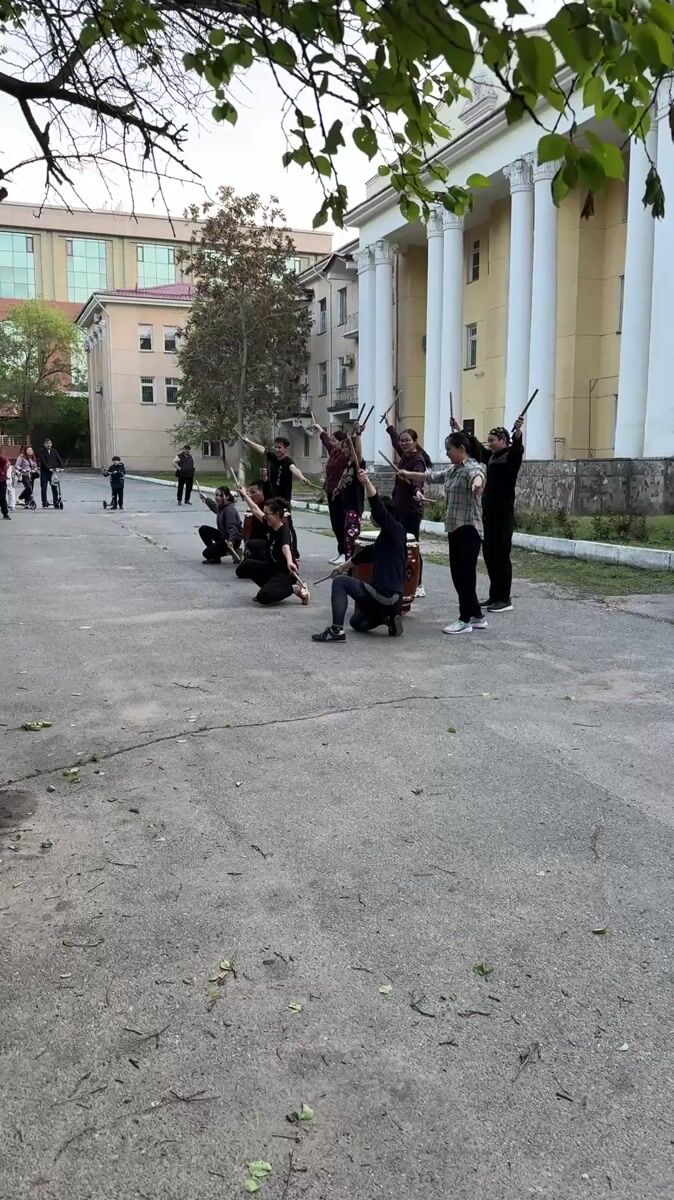 Taiko drum group performs outdoors in Bishkek, Kyrgyzstan