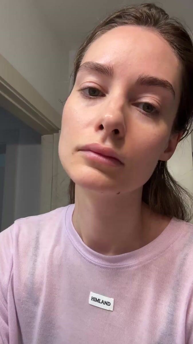 Topics: morning routine, bathroom selfie, makeup application, face cleansing, personal care, indoor lifestyle, residential, daily life, domestic, routine