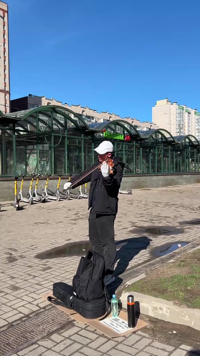 Topics: street violin, morning performance, busking, street musician, outdoor music, performance, street art, music, urban, daily life