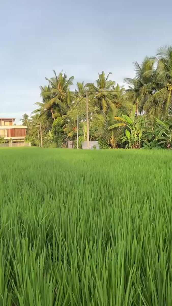 Morning rice paddies and playful dog captured in Ubud