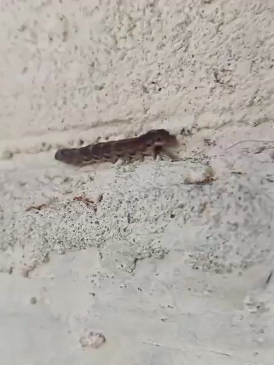 Topics: caterpillar, street cats, urban wildlife, animal behavior, residential area, concrete surface, wildlife observation, urban environment, nature, daily life