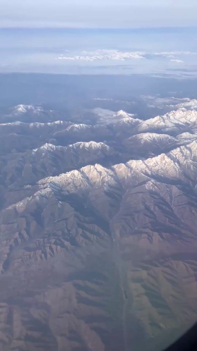 Passenger captures aerial mountain views during Kazakhstan flight
