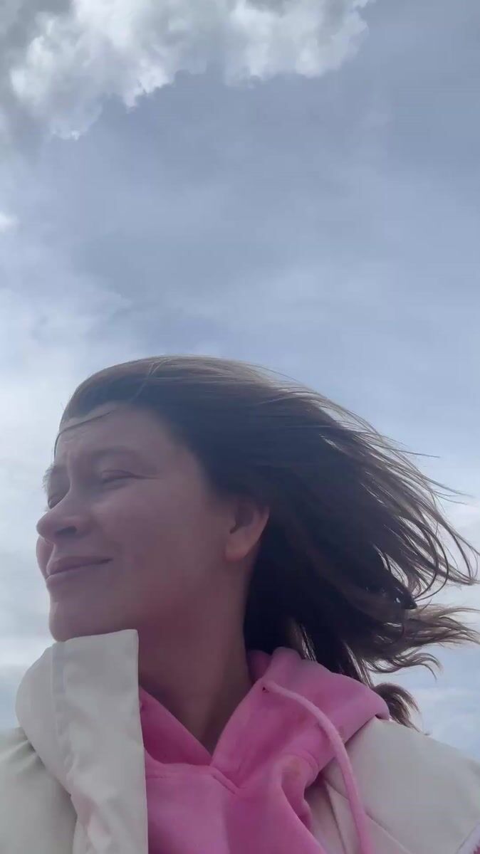 Topics: windy weather, woman portrait, water recreation, outdoor leisure, dramatic sky, nature photography, seasonal activity, lifestyle, outdoor, daily life