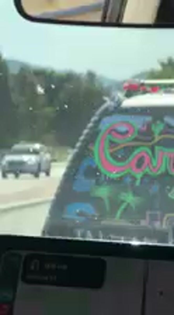 Topics: neon customization, vehicle modification, car decoration, automotive, street scene, daytime driving, transportation, urban, daily life, california