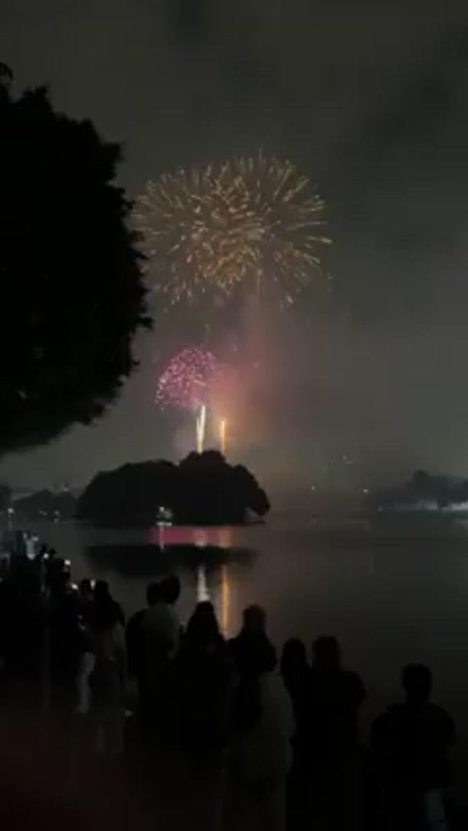 Crowds watch colorful fireworks display over Hanoi waterfront