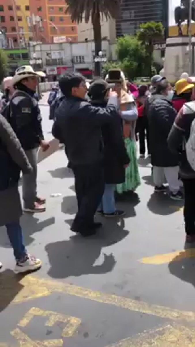 Peaceful demonstration with traditional dress held in La Paz square