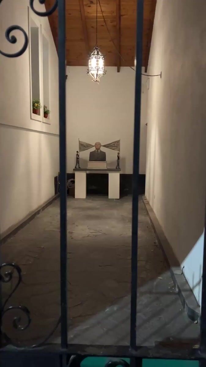 Sculptural display with bust captured in Bahía Blanca hallway