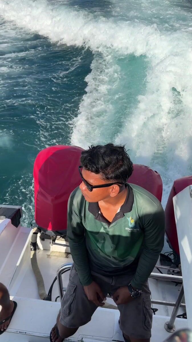 Topics: green clothing, boat travel, street sighting, nighttime activity, urban observation, transportation, fashion, maritime, daily life, social