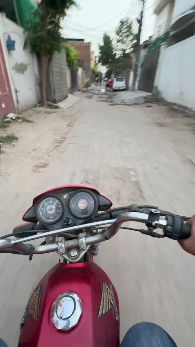Topics: motorcycle ride, residential street, honda motorcycle, neighborhood travel, urban residential, transportation, daily commute, urban, mobility, pakistan life