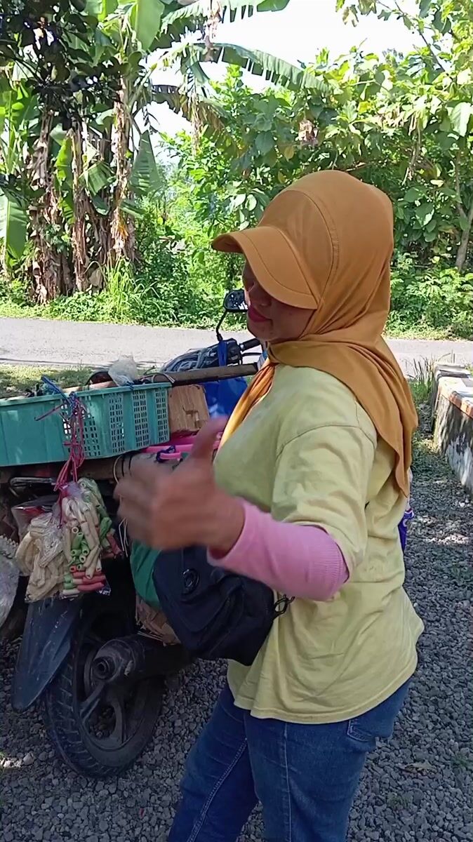 Woman with loaded motorcycle observed in Baron, Indonesia