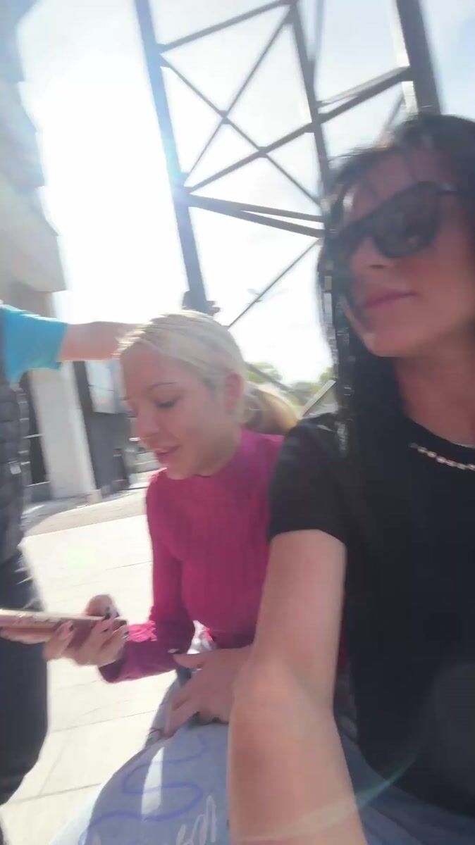 Topics: street relaxation, smartphone viewing, delivery truck, parking area, casual gathering, urban leisure, afternoon scene, daily life, social, urban