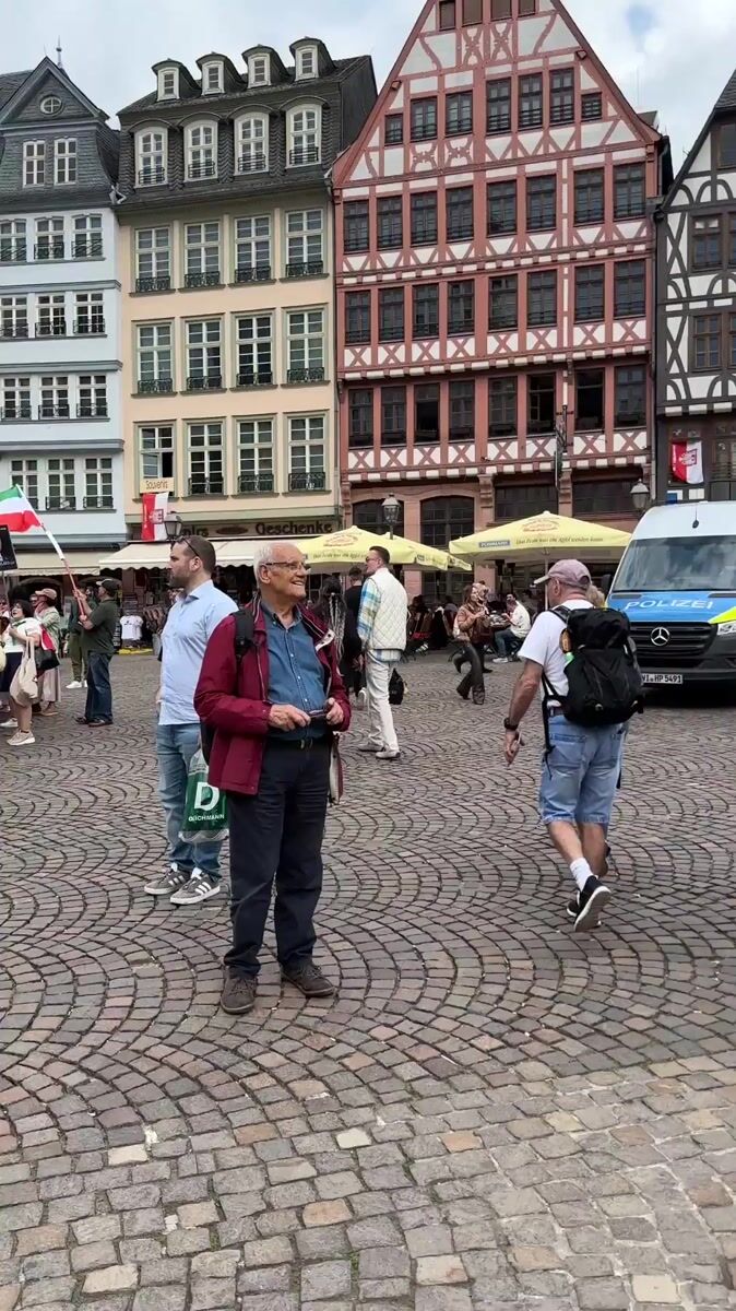 Iranian flag demonstration held in Frankfurt's historic Romerberg square