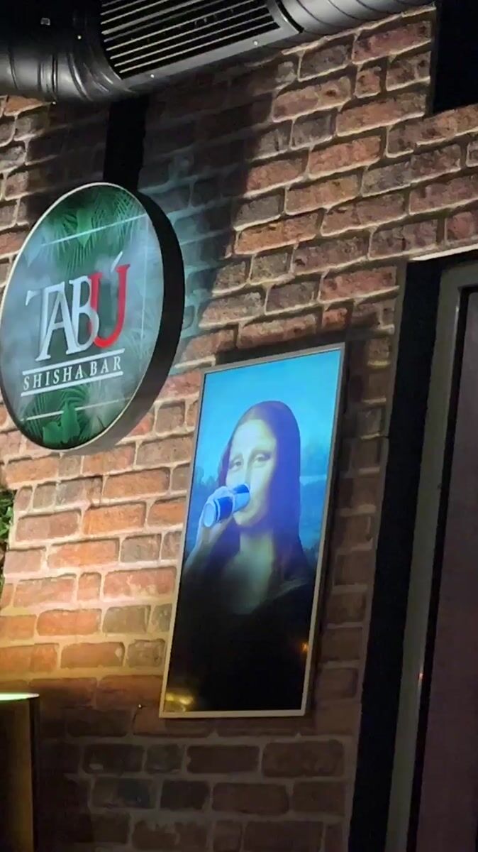 Topics: digital art, mona lisa, nightclub, street scene, nightlife, urban art, evening, social, urban, daily life