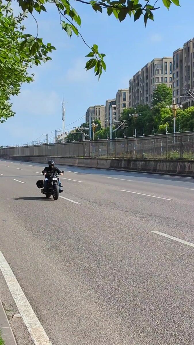 Topics: water truck, street maintenance, motorcyclist, municipal service, traffic, urban infrastructure, public work, transportation, city life, daily routine