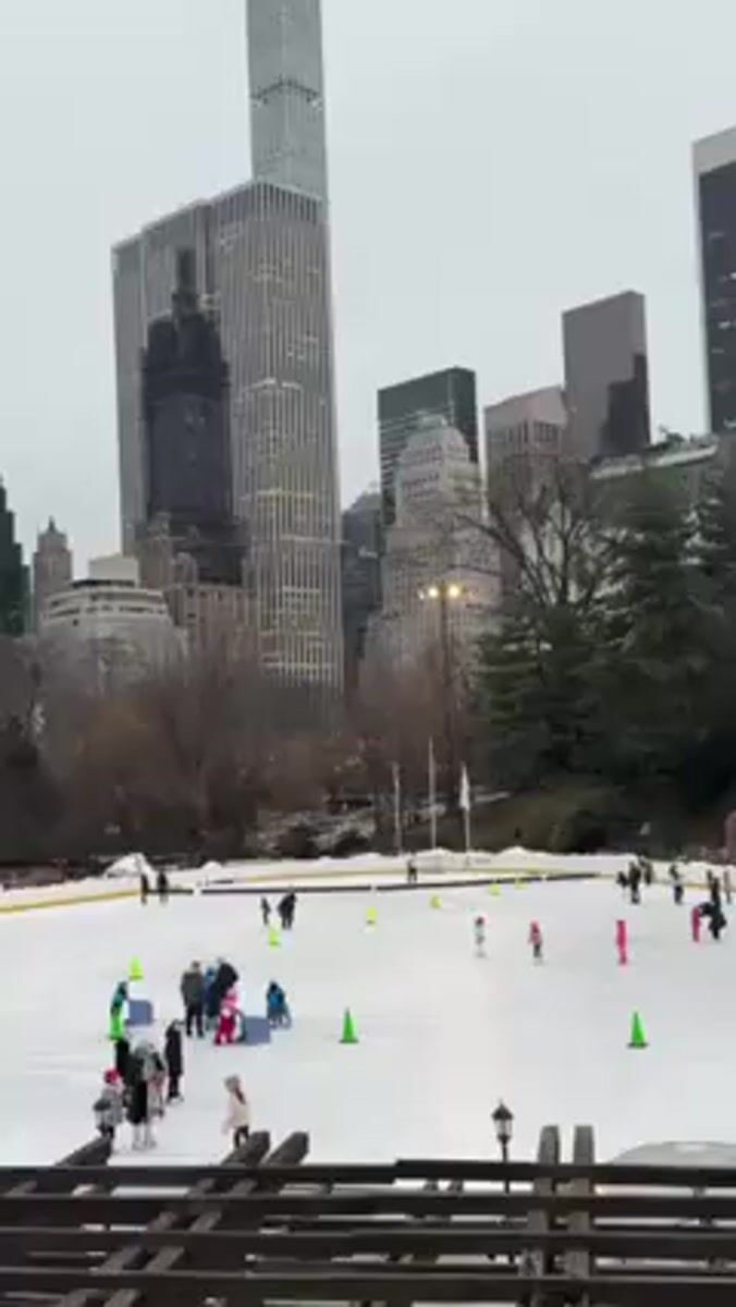 Topics: ice skating, training cones, public rink, winter sport, recreation, evening activity, urban sport, leisure, social, daily life