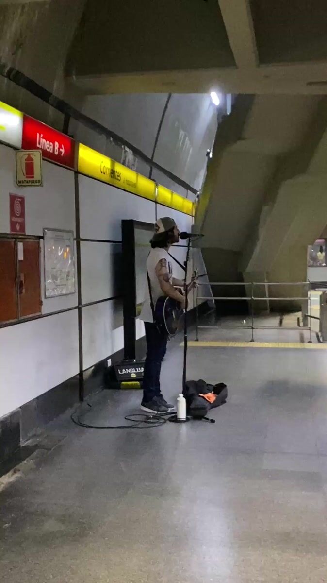 Busker performs acoustic set in Buenos Aires subway station