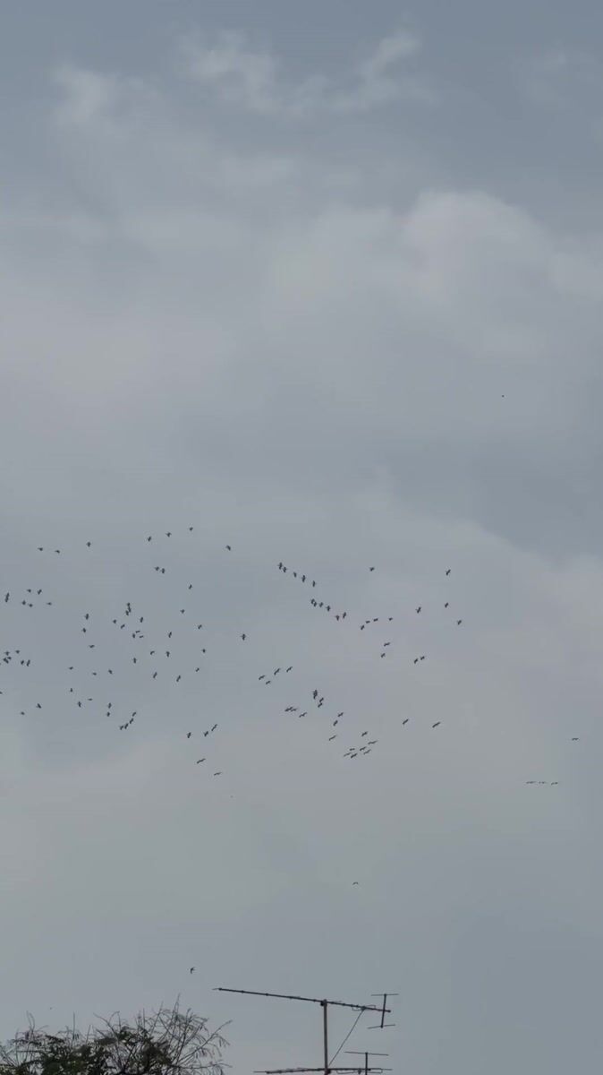 Bird flock spotted over Kiryat Bialik on overcast morning