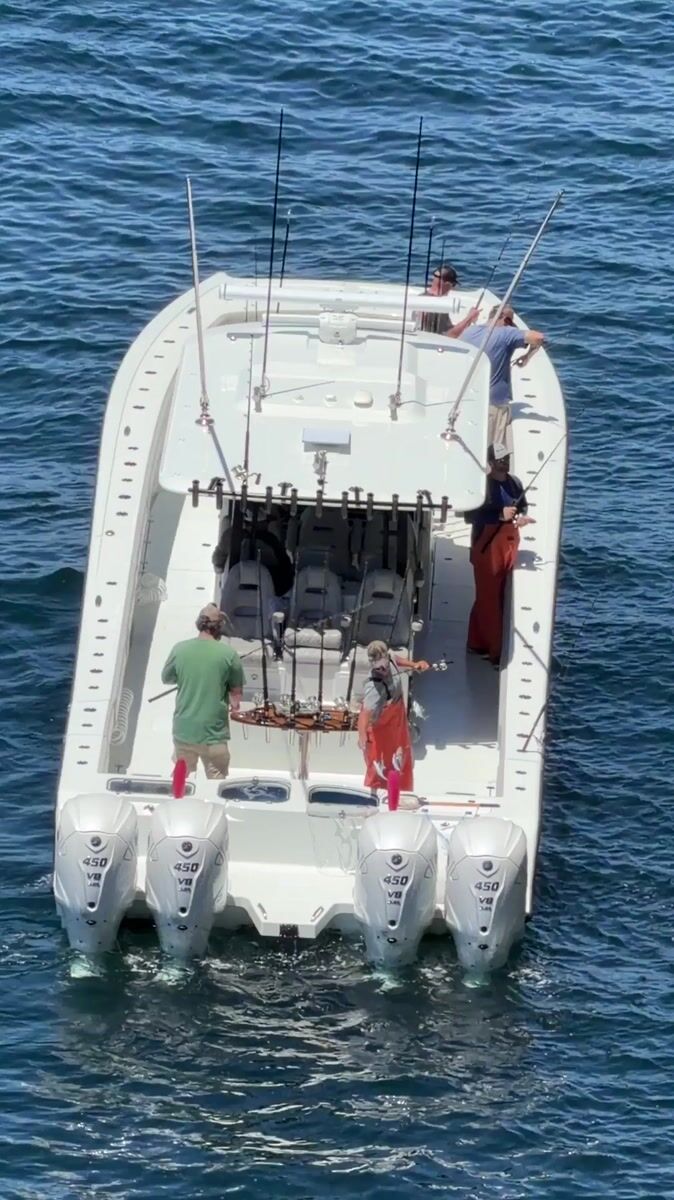 Topics: fishing boat, outboard motor, aerial footage, recreational fishing, ocean activity, marine vessel, leisure, outdoor recreation, transportation, daily life