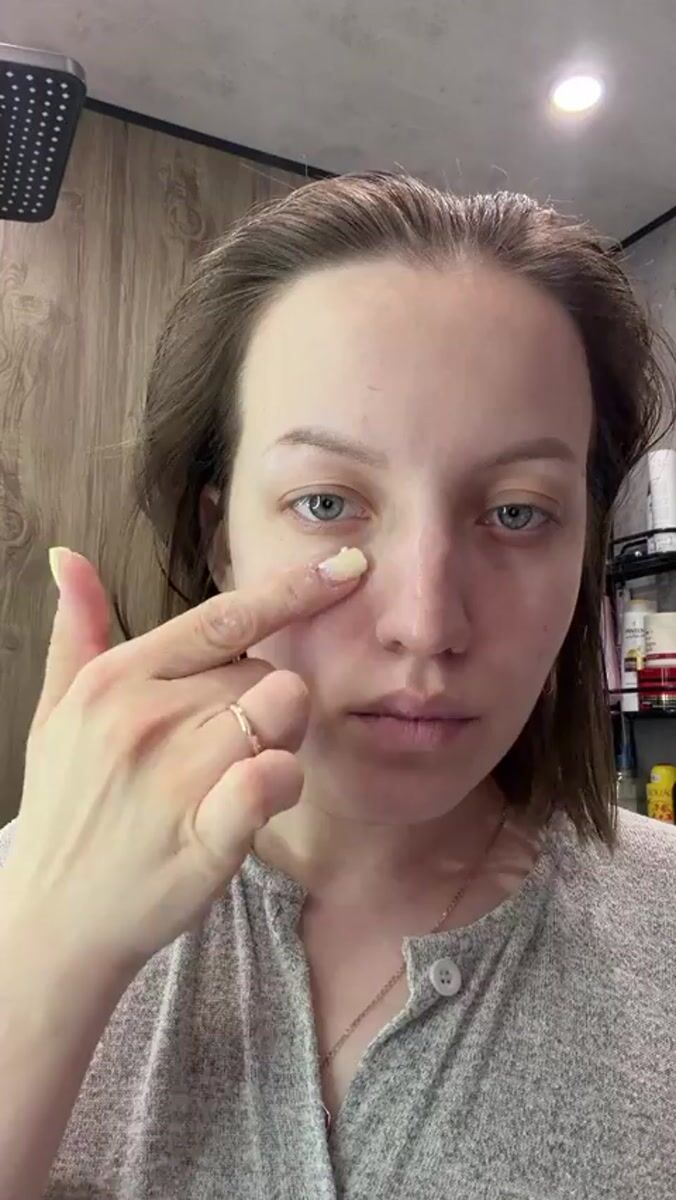 Woman photographed during morning routine in Reshetnikovo bathroom