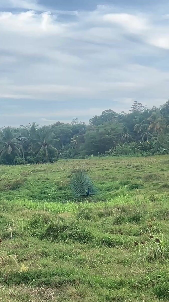 Peacock displays full plumage in Sri Lankan fieldLocation: Ginigala, Sri Lanka4/16/20261 sources from 1 citizen journalistsTopics: peacock display, plumage, bird behavior, wildlife, nature, field, animal, outdoor, sri lanka, natural worldSource MediaPhoto source: 73f53c5e