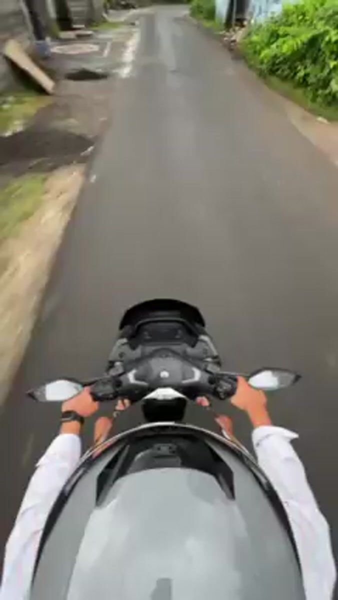 Topics: motorcycle riding, narrow road, first person video, transportation, street travel, motorbike, traffic, urban, daily life, indonesia