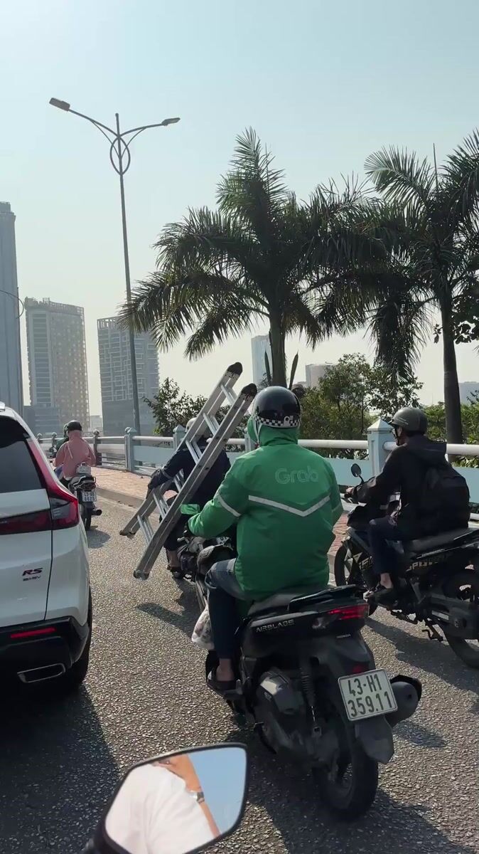 Motorcycle traffic observed on Đà Nẵng bridge includes delivery driver