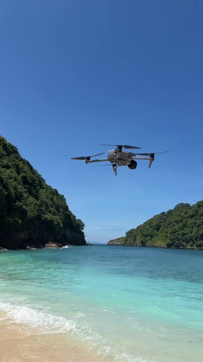 Drone spotted over pristine Nusa Penida beach at dawn