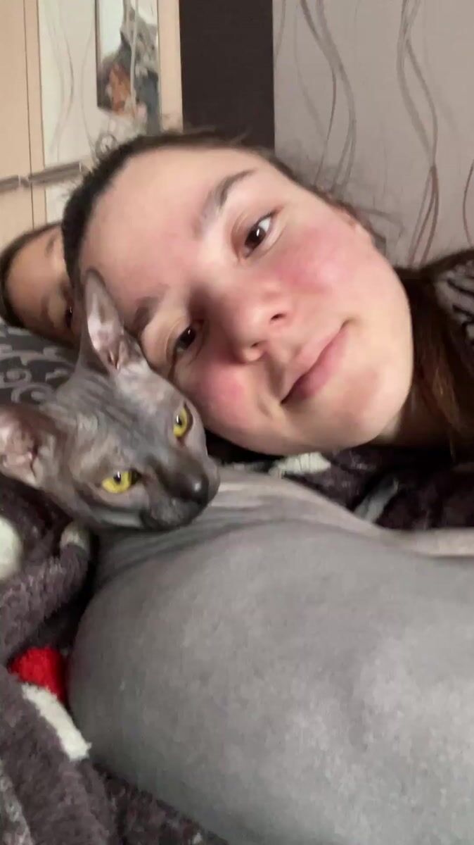 Topics: hairless cat, sphynx cat, pet bonding, domestic life, winter morning, rural village, indoor scene, daily life, personal, quiet moment