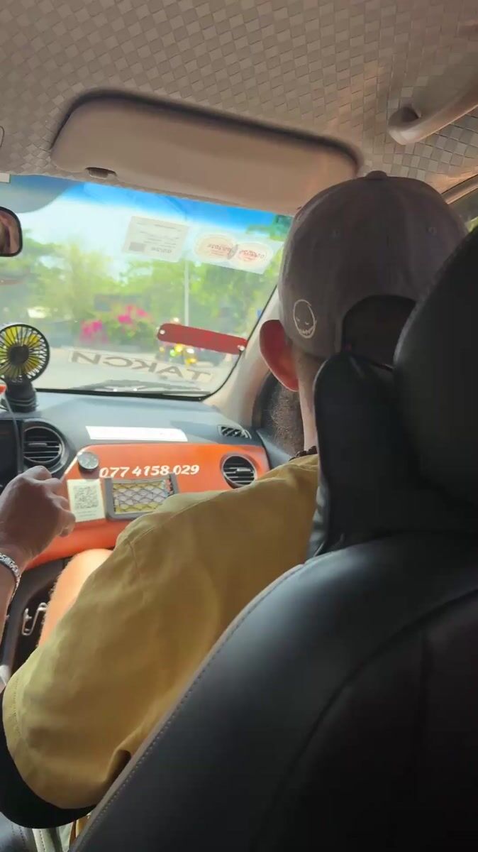 Taxi passenger gestures at windshield in Bắc Nha Trang