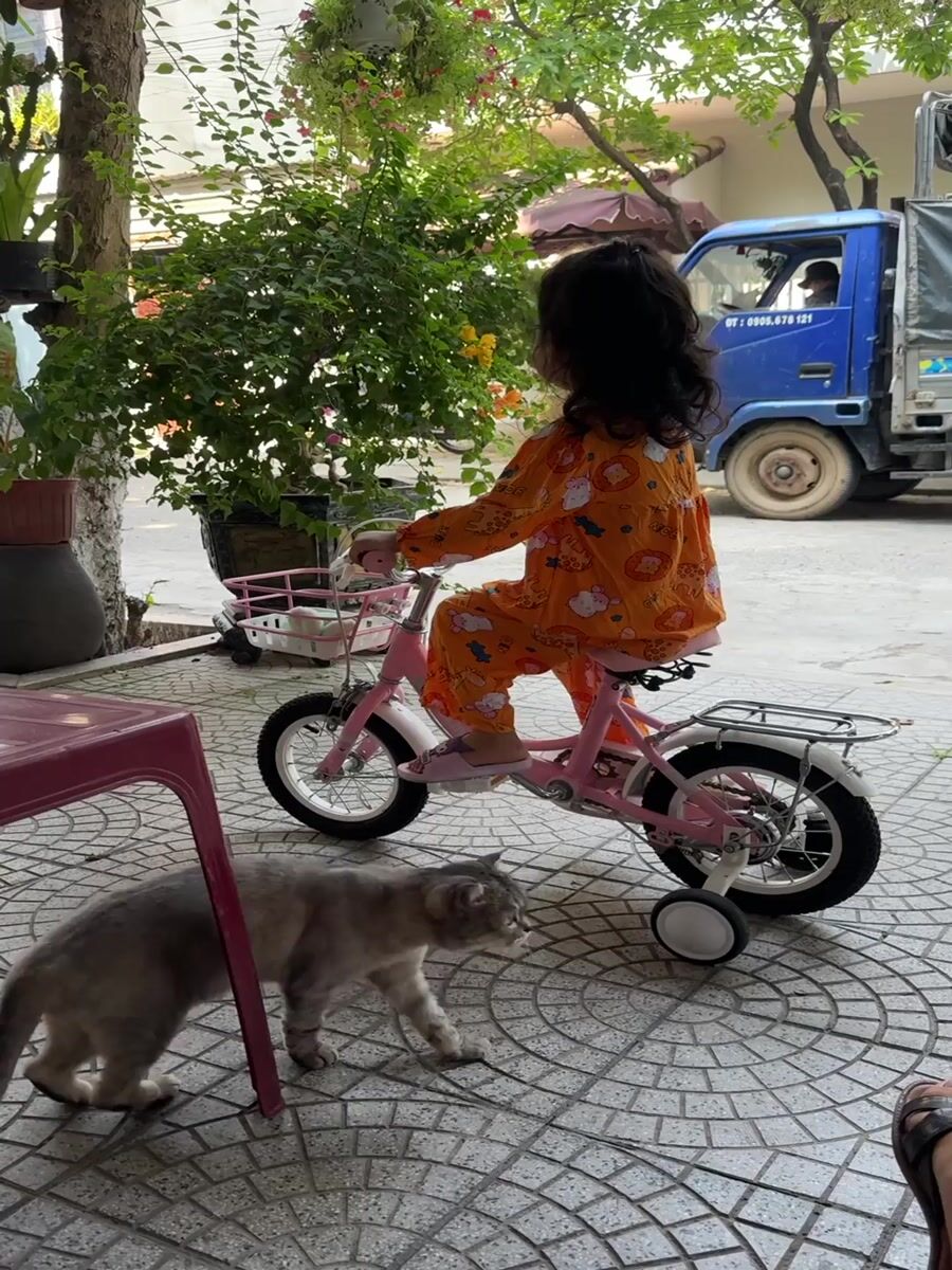 Gray cat observed being cared for in Đà Nẵng courtyard