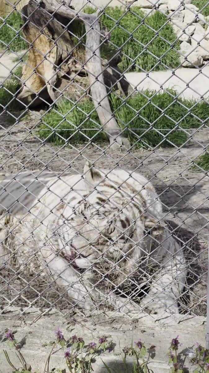 White tiger rests in enclosure at Varna zooLocation: Varna, Bulgaria4/17/20261 sources from 4 citizen journalistsTopics: white tiger, zoo enclosure, resting animal, zoo, wildlife, captivity, animal, nature, tourism, daily lifeSource MediaPhoto source: b4eda44bPhoto source: 7502733bPhoto source: 984984b0Photo source: 6aa6c747