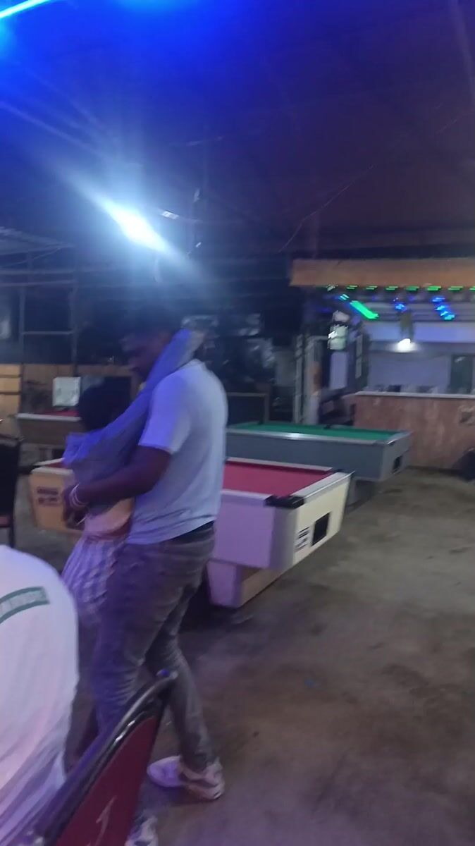Topics: nightlife venue, social gathering, indoor recreation, outdoor seating, couple embrace, entertainment, social, urban, leisure, daily life
