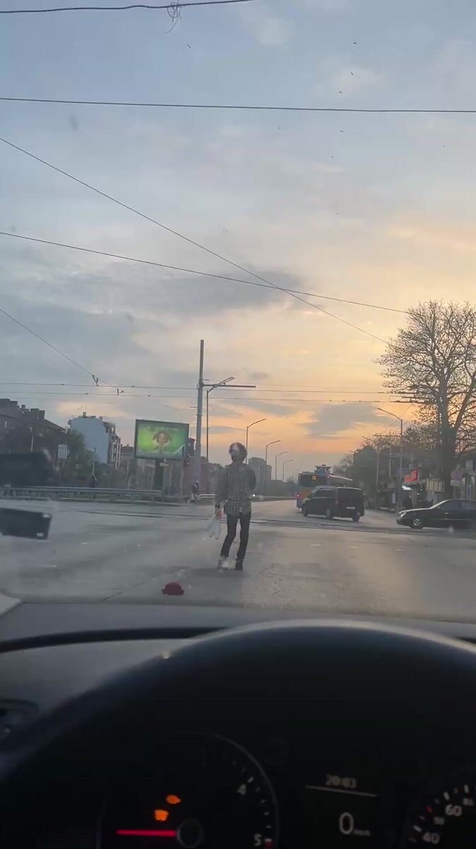 Street juggler performs with clubs in Sofia, Bulgaria
