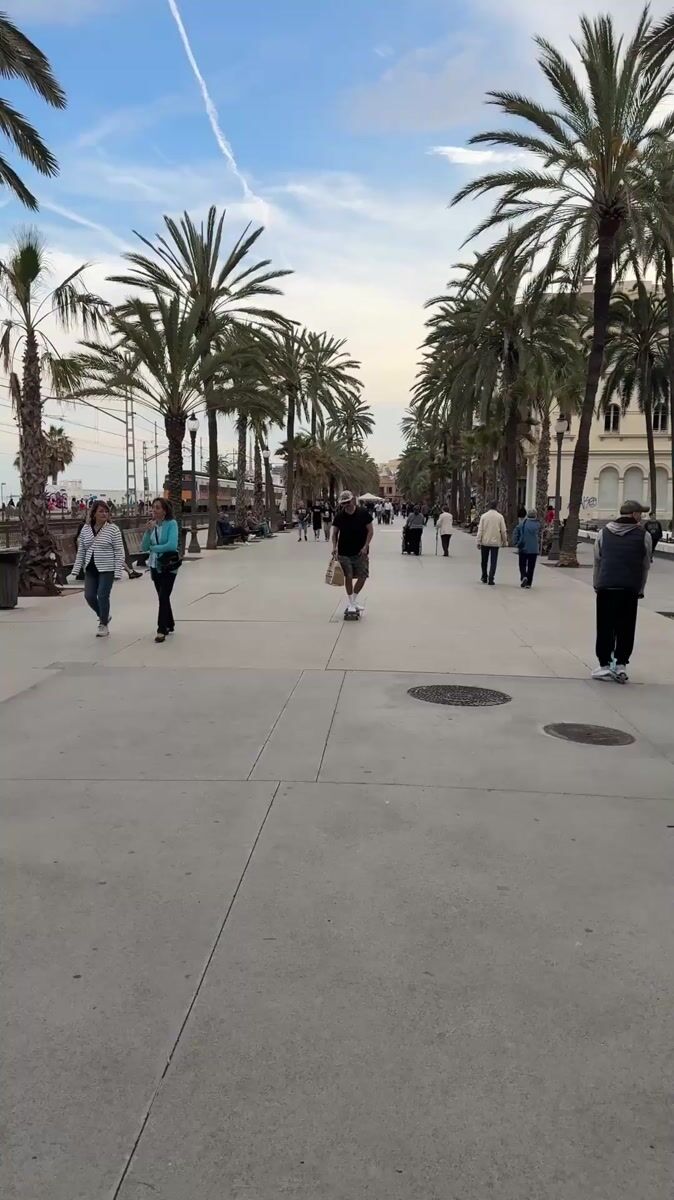 Topics: skateboarding, palm trees, concrete walkway, pedestrian, urban transport, recreational, street life, urban, transportation, daily life