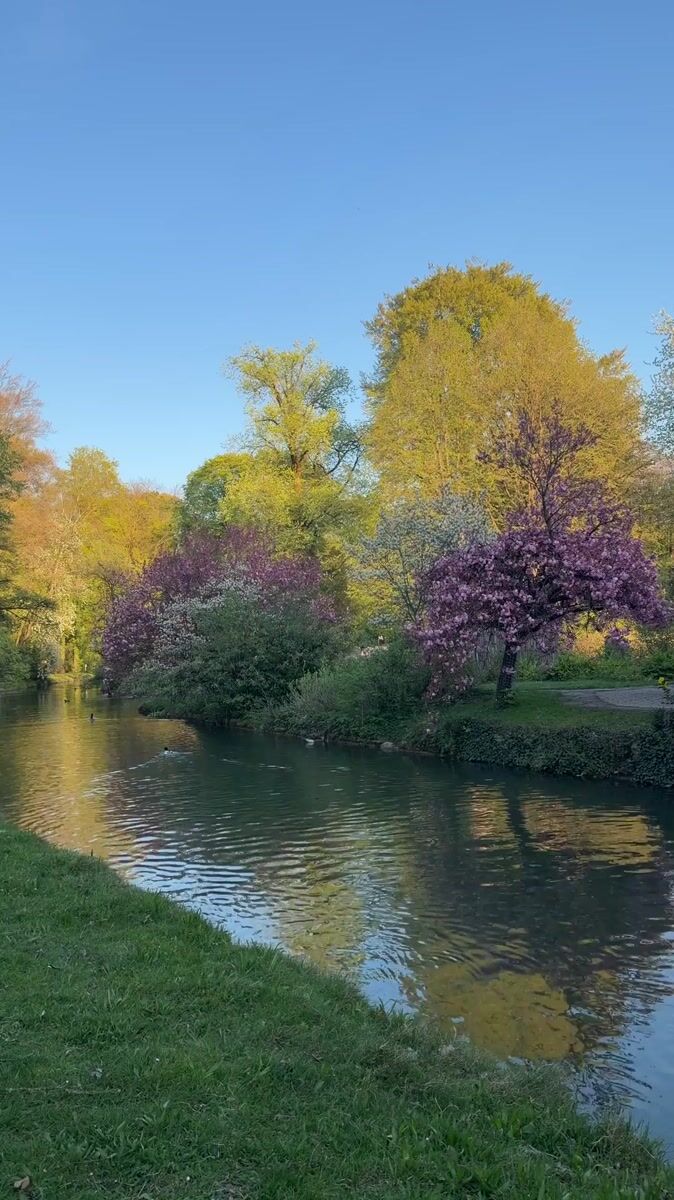 Tranquil river scene documented in Munich park Friday afternoon