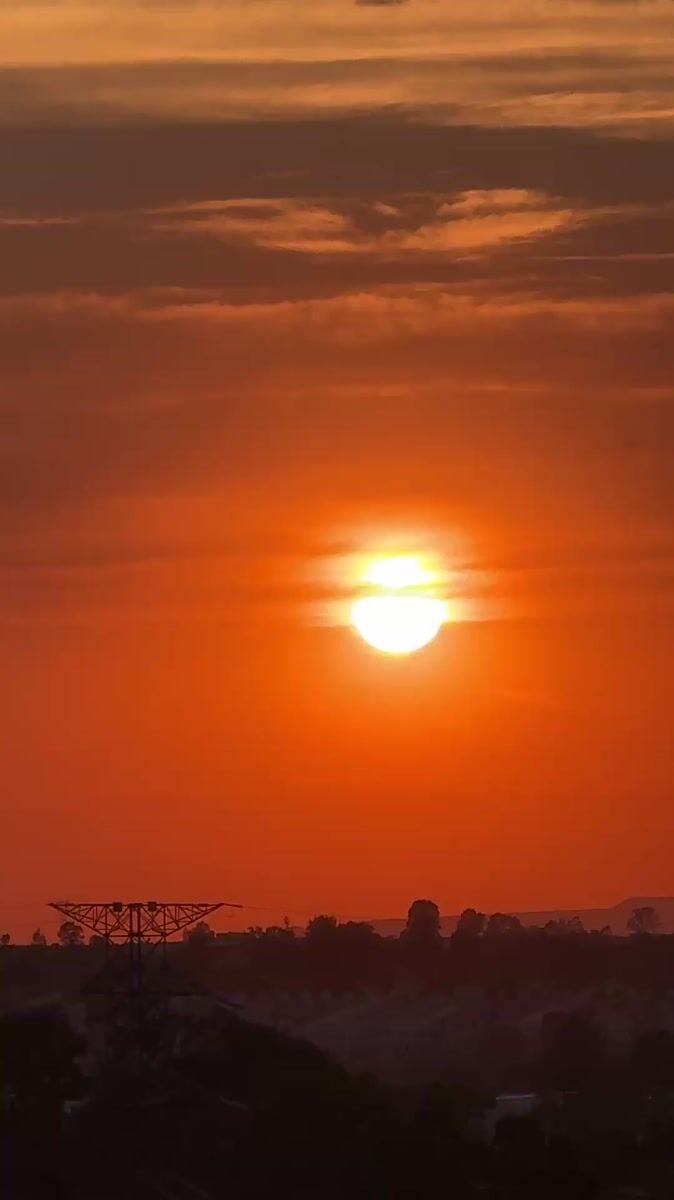 Topics: orange sunset, residential view, balcony perspective, sunset, residential, urban landscape, evening, daily life, urban, natural