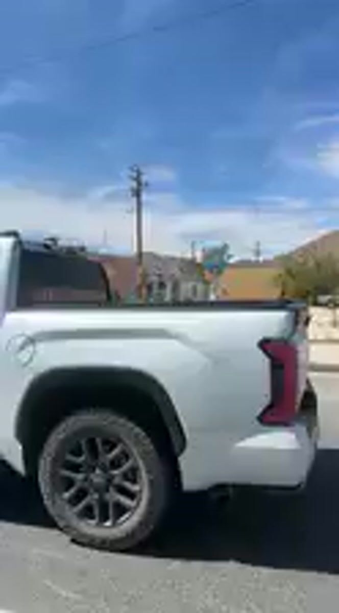 White pickup truck filmed in Yucca Valley evening