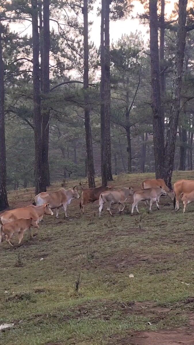 Topics: cattle herd, pine forest, highland grazing, pastoral scene, agriculture, livestock, vietnam highlands, rural life, nature, daily life