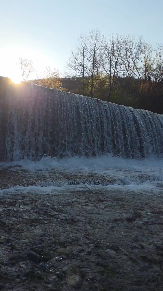 Dawn waterfall footage captured at Bulgarian dam near Blagoevgrad