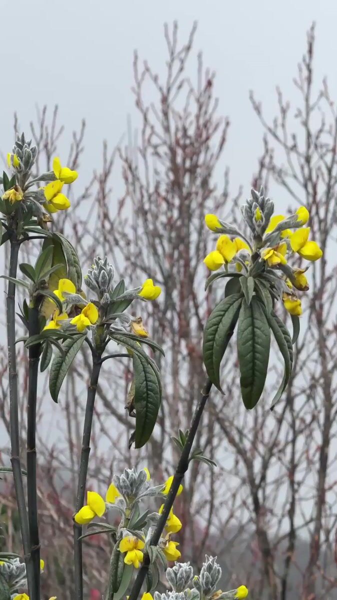 Morning hikers trek misty Nepal mountain trails amid blooming flowers